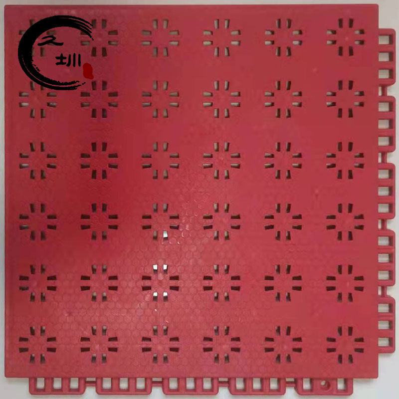 室外籃球場ESE熱塑懸浮地墊運動場TPU軟塑拼裝地板支撐采用米子口子十字支撐,可以使面層更平整,運動時不會使面層變形:“米字形”密集性柱腳有序支撐,形成穩(wěn)固的抗沖擊系統(tǒng),沖擊吸收優(yōu)異,表面采用蜂窩式防滑紋路處理。