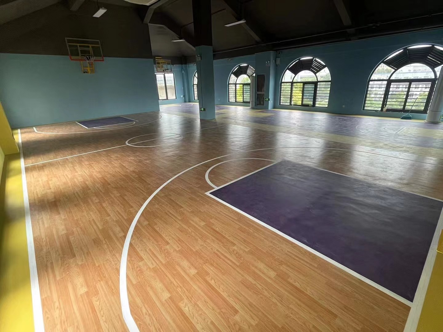 其次,耐用是籃球場膠地不可忽視的性能指標(biāo)。籃球場作為高強度運動場所,其地面需要承受頻繁的跑動、跳躍和摩擦。因此,籃球場膠地必須具備良好的耐磨性、抗壓性和抗老化性,確保在使用過程中不易磨損、開裂或變形。只有這樣,才能確?;@球場的長期使用壽命,減少維修和更換的頻率,降低運營成本。